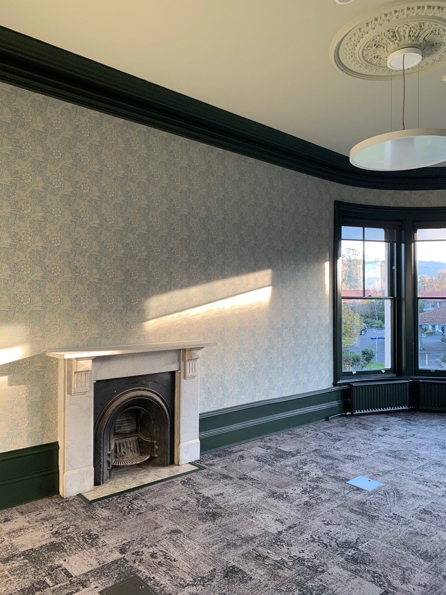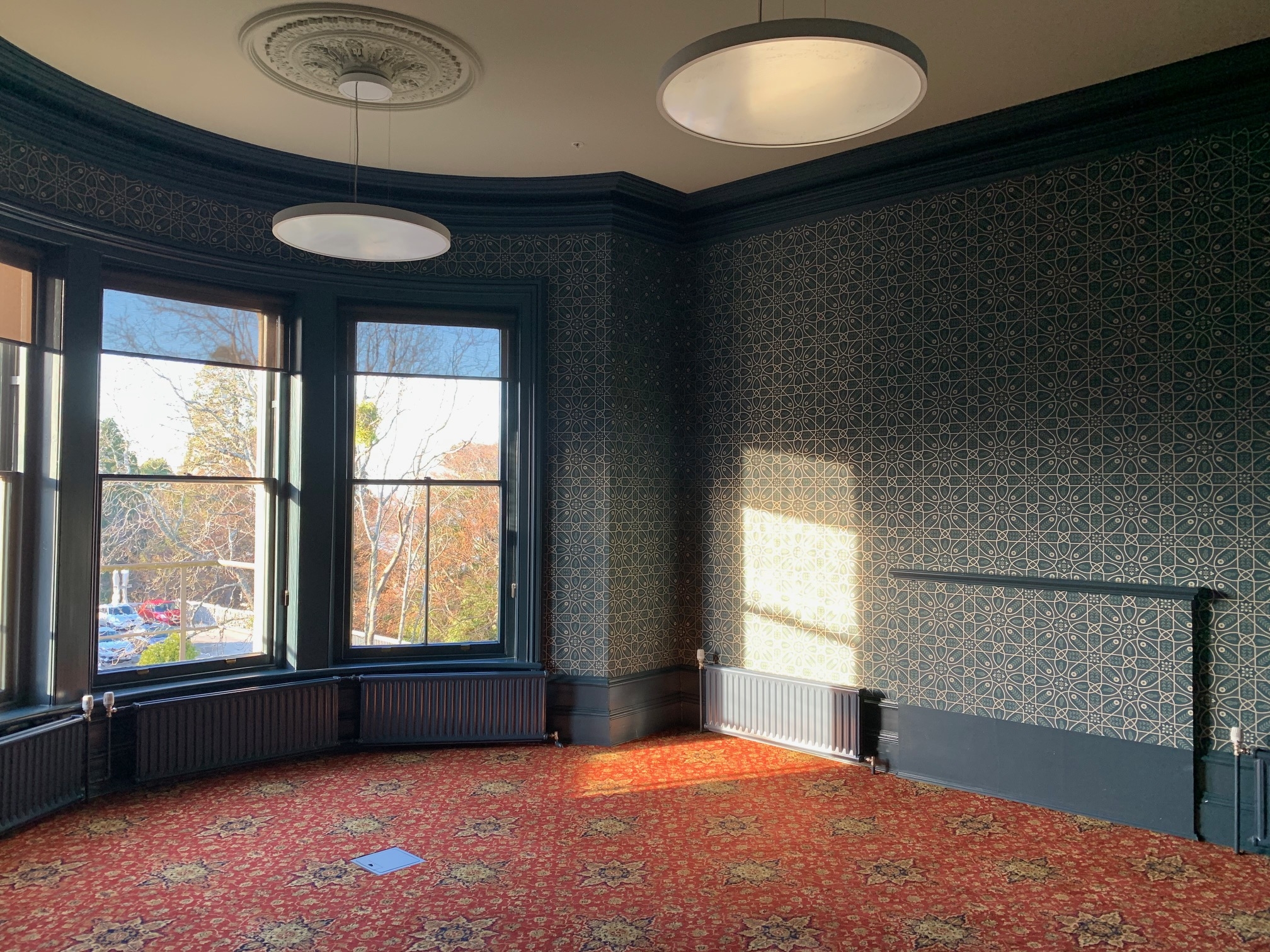 Naylor Love started building work in 2019, knowing that as they began to work on the house it would give up its construction secrets. Marinoto House did not disappoint – triple brick construction, uneven floor joists, 1970s joinery units, crumbling decorative ceilings, rattling radiators and ageing wiring all added challenge to the project. These were worked through, and the new offices are resplendent with dark blue and green paint tones complementing William Morris wallpapers and a warm red-patterned Axminster carpet. Upgraded bathrooms incorporate original tiling with modern fittings. The new spaces include five offices, an ICT training room and a new boardroom-style meeting room and are now ‘home’ to ten lucky Mercy staff members.