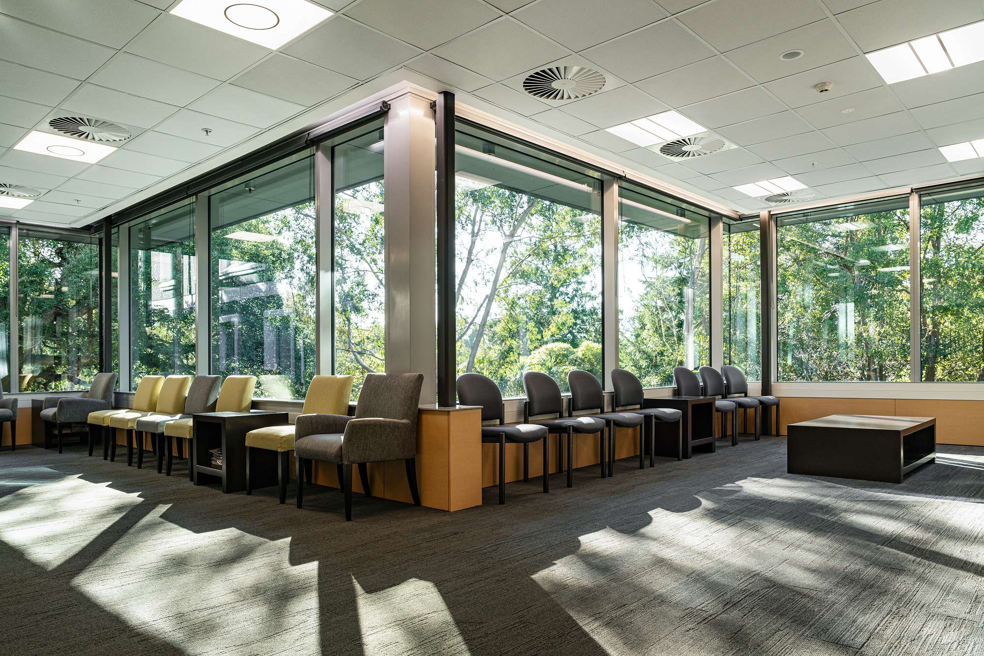 The expanded staff room, bathed in natural light and offering views of the town-belt trees, provides theatre personnel with a relaxing environment to rest between surgeries.